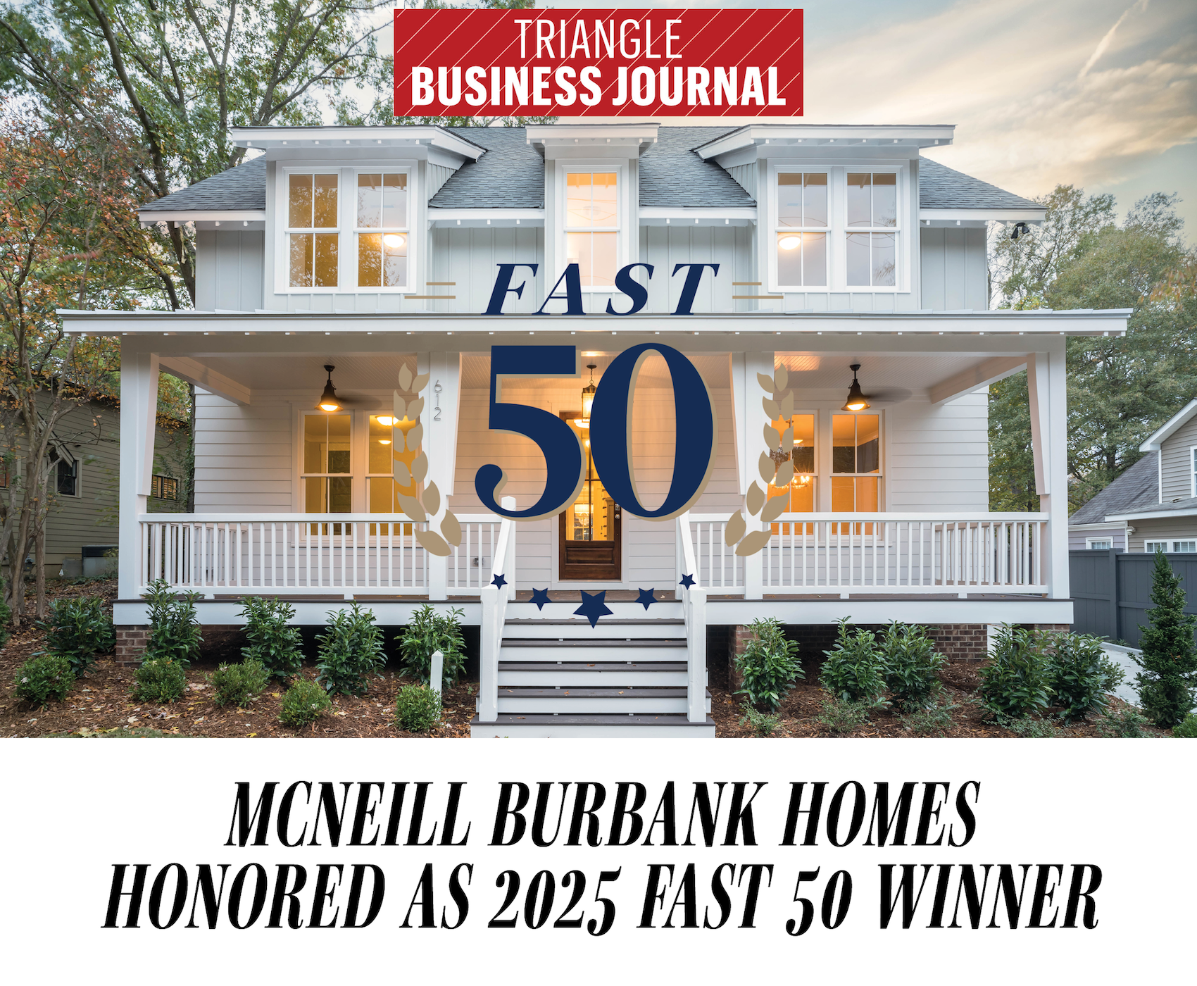 Raleigh, NC – October 17th, 2025 – McNeill Burbank Homes, a distinguished Raleigh custom home builder, proudly announces its recognition as a 2025 Fast 50 Award winner by the Triangle Business Journal, thanks to its remarkable growth and profitability from 2022 to 2024. The winners are selected by a rigorous evaluation of financial performance and growth, based on a formula that accounts for revenue and profitability growth in the preceding three years. The winners are objective – the calculations are conducted by BDO, a trusted Fast 50 partner. McNeill Burbank Homes is proud to rank among Raleigh, North Carolina’s most dynamic private companies.